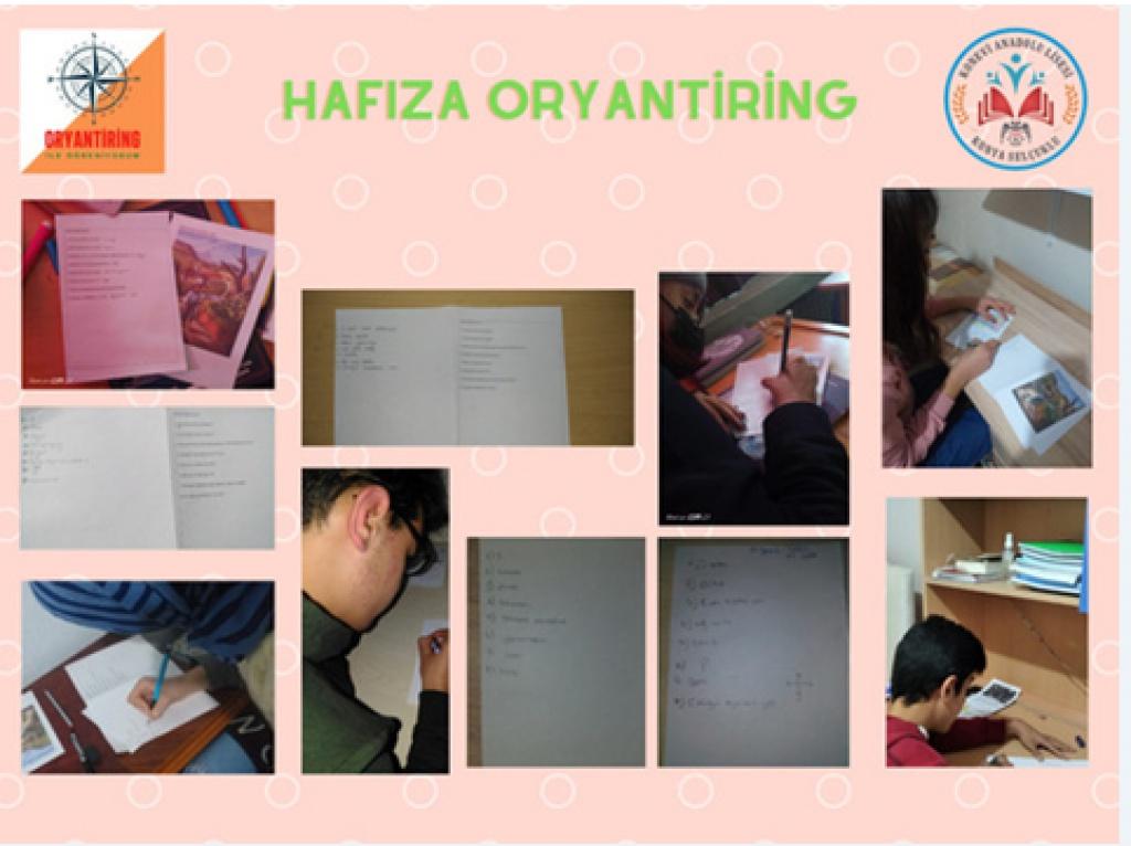 Oryantiring İle Öğreniyorum projemizde 3. etkinliğimiz olan Hafıza Oryantiringi çalışması yapıldı. Bunun için kullanılan araçlar: Antreman Tabağı, Tabak Yerleşim Planı, Hafıza Kartları. Projemizde ki 6 öğrenci ile etkinliğimiz başarı ile gerçekleştirildi.