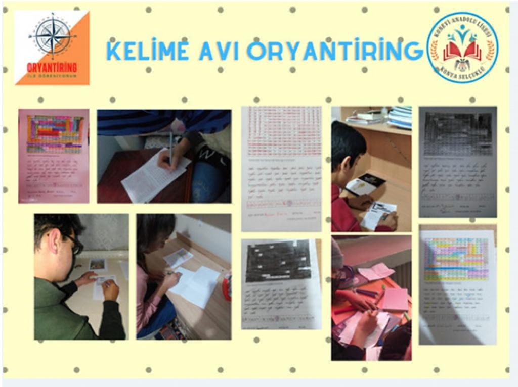 Öğrencilerimiz kelime avı etkinliğini evlerinde yaptılar ve fotoğraflarını paylaştılar. Öğrencilerimiz oryantiring ile ilgili kelimeleri taradıktan sonra kalan harfleri yan yana getirdiklerinde ORYANTİRİNG ÖĞRENİYORUM ifadesine ulaştılar.